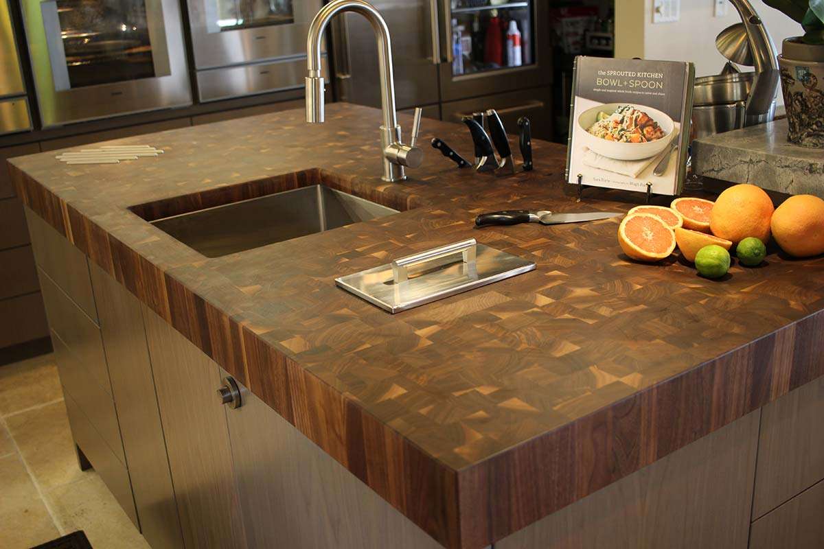 Butcher Block countertops with knife slots aRE A PRACTICAL ADDITION TO chopping surfaceS.
