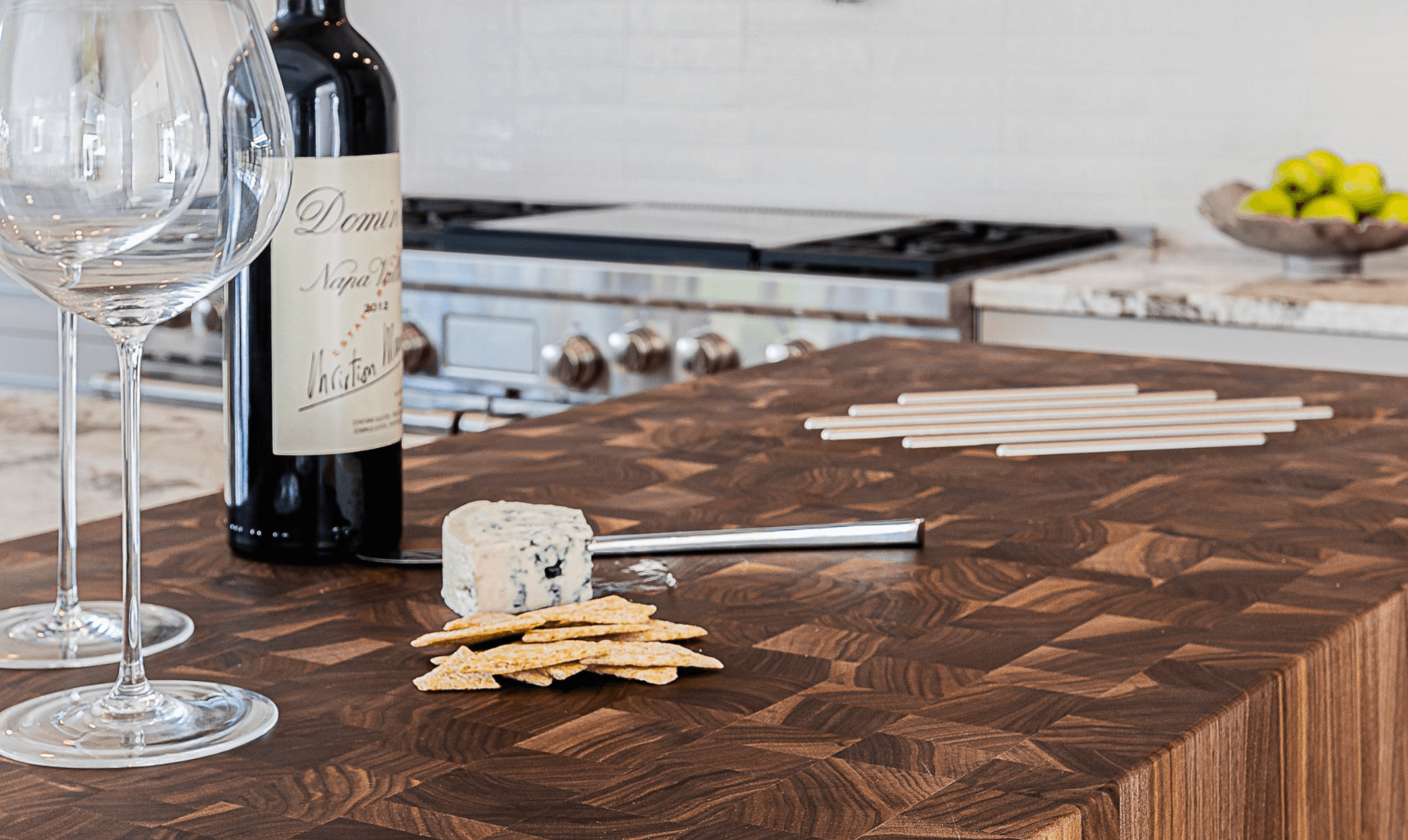 Butcher Block Countertops with Trivets are the perfect solution to keep your countertop safe from hot pots and pans. Integrated Trivets are composed of several routed channels in the butcher block countertop that hold multiple stainless steel cooling rods. The cooling rods are removable for easy cleaning and can be put in the dishwasher. Butcher Blocks are not available to be finished with Durata® and cannot be stained. Butcher Block Countertops with Trivets are finished with Grothouse Original Oil™, the perfect finish for preparing and direct chopping of food.
