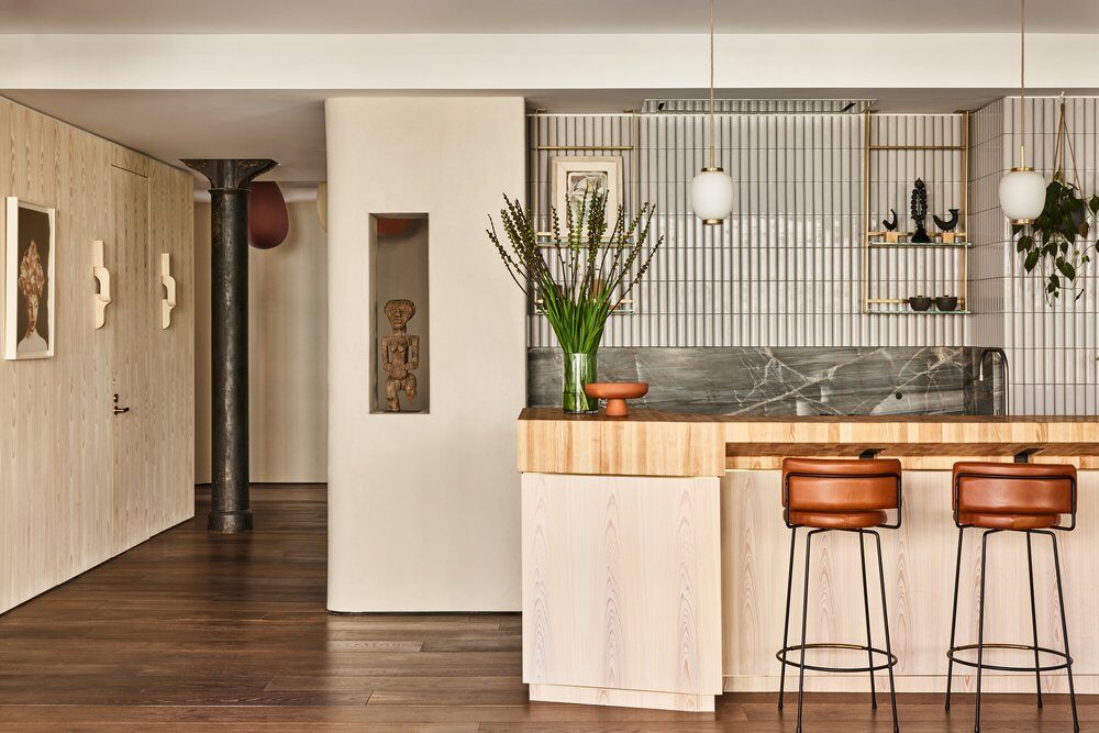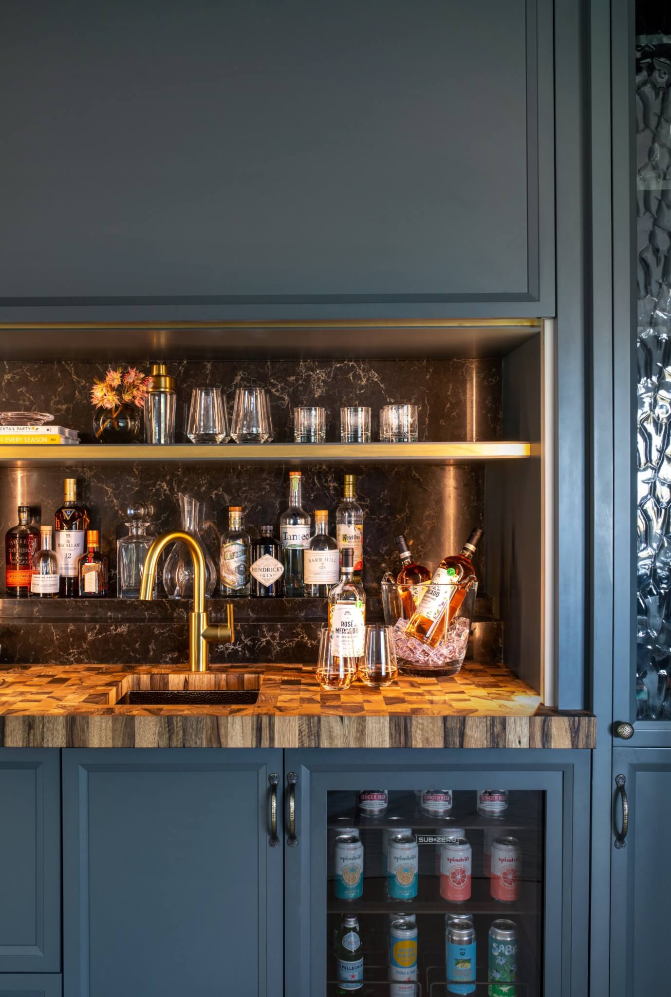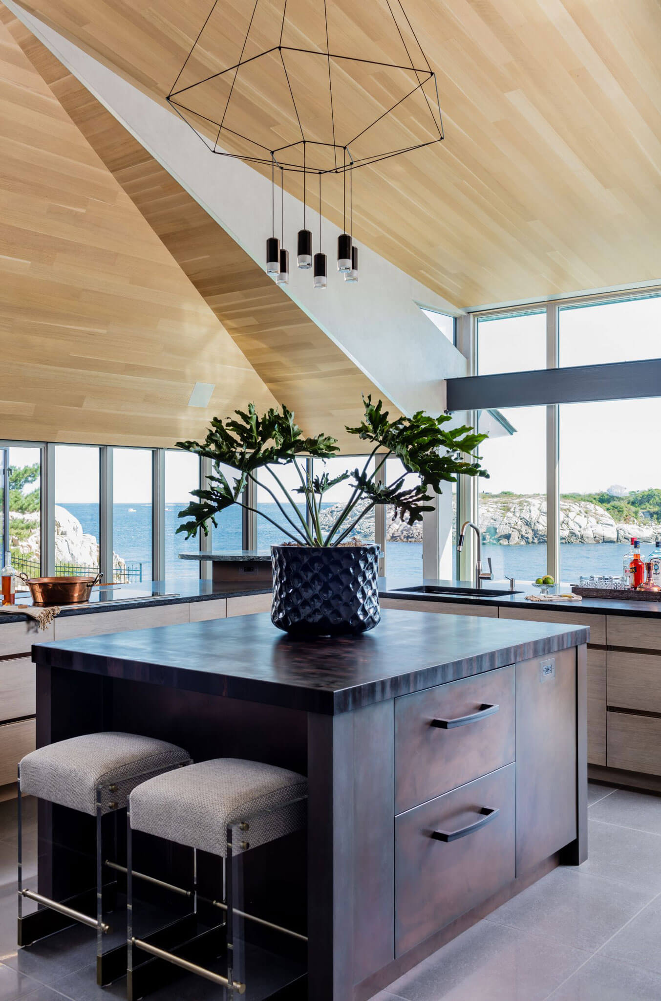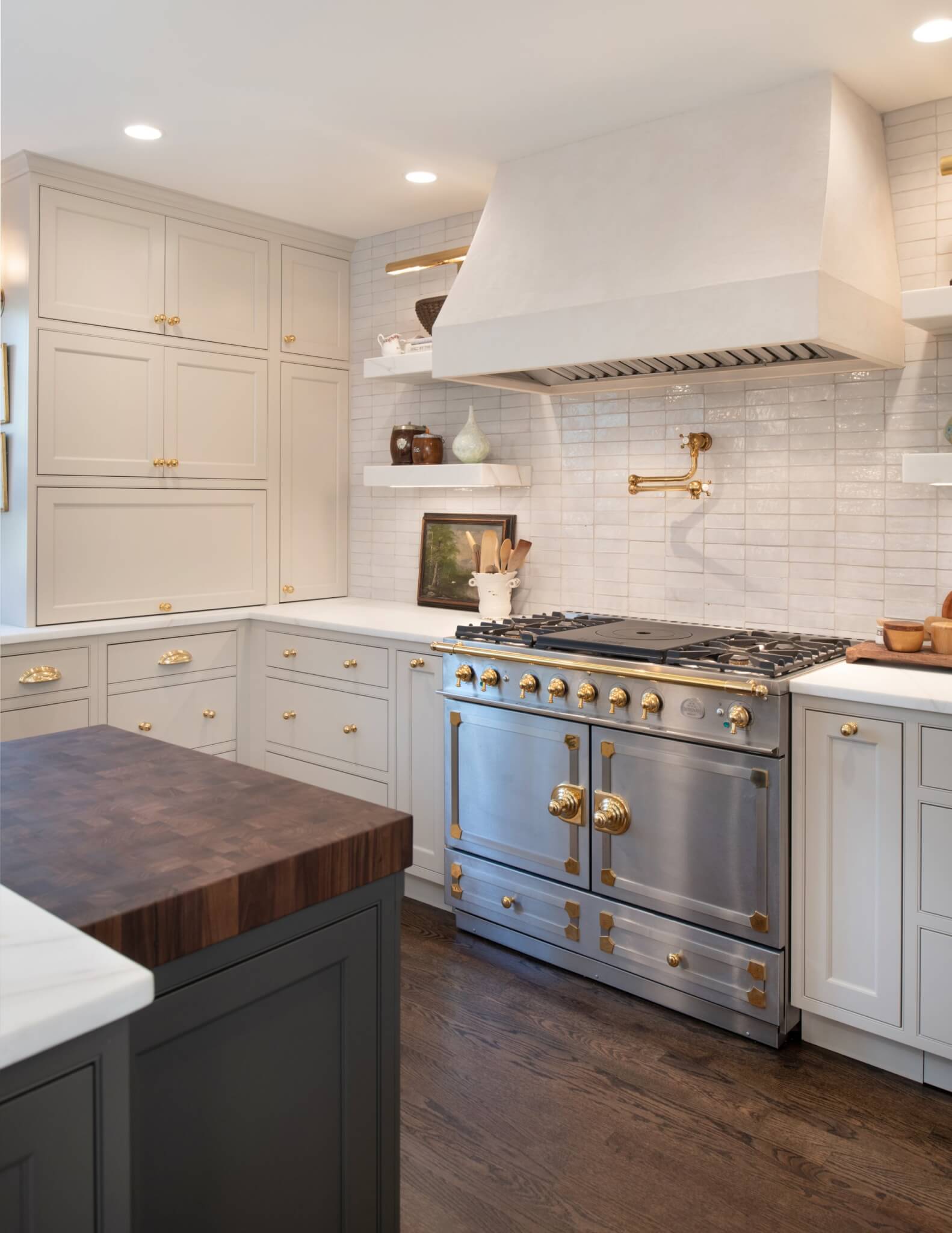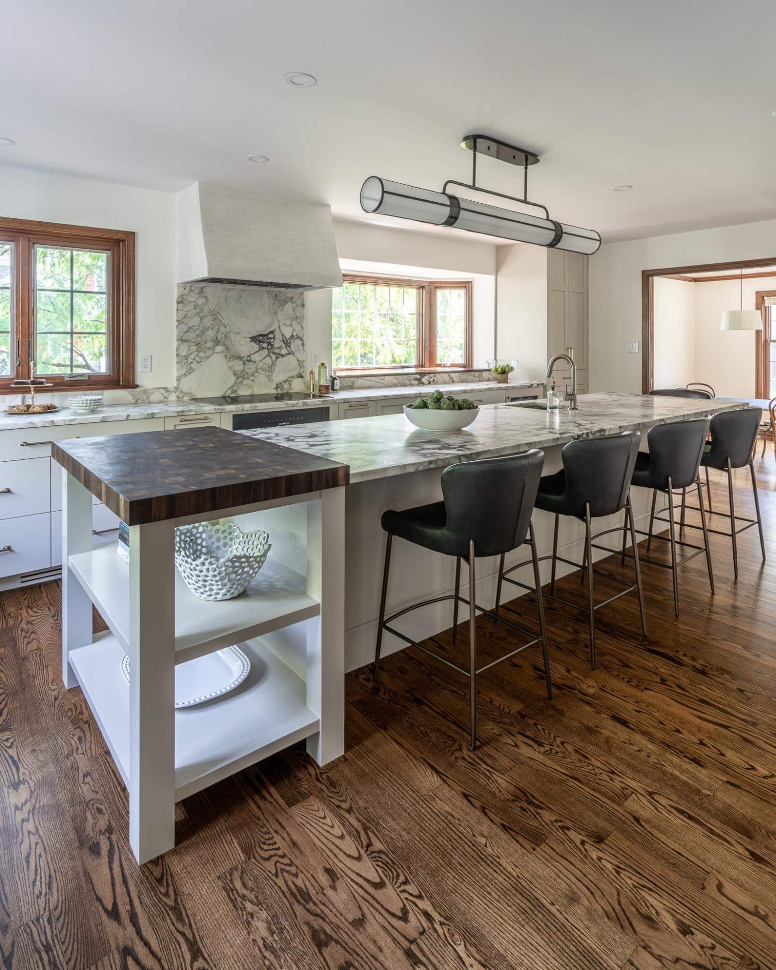 The butcher block countertops shown in this gallery are end-grain construction. This style of butcher block can be crafted from over 60 species. Many of the butcher block countertops shown are used for direct chopping and food preparation. A butcher block island can contain a sink, as we specially treat the opening with our proprietary sealants to ensure worry free use around water. Butcher Block countertops are safe to use around stoves when properly installed. These organic surfaces ship in two to three weeks (14 to 21 days) and arrive with a comprehensive lifetime warranty. Click on each thumbnail image below to launch a full size version of the image and learn more about the interior design of the space.